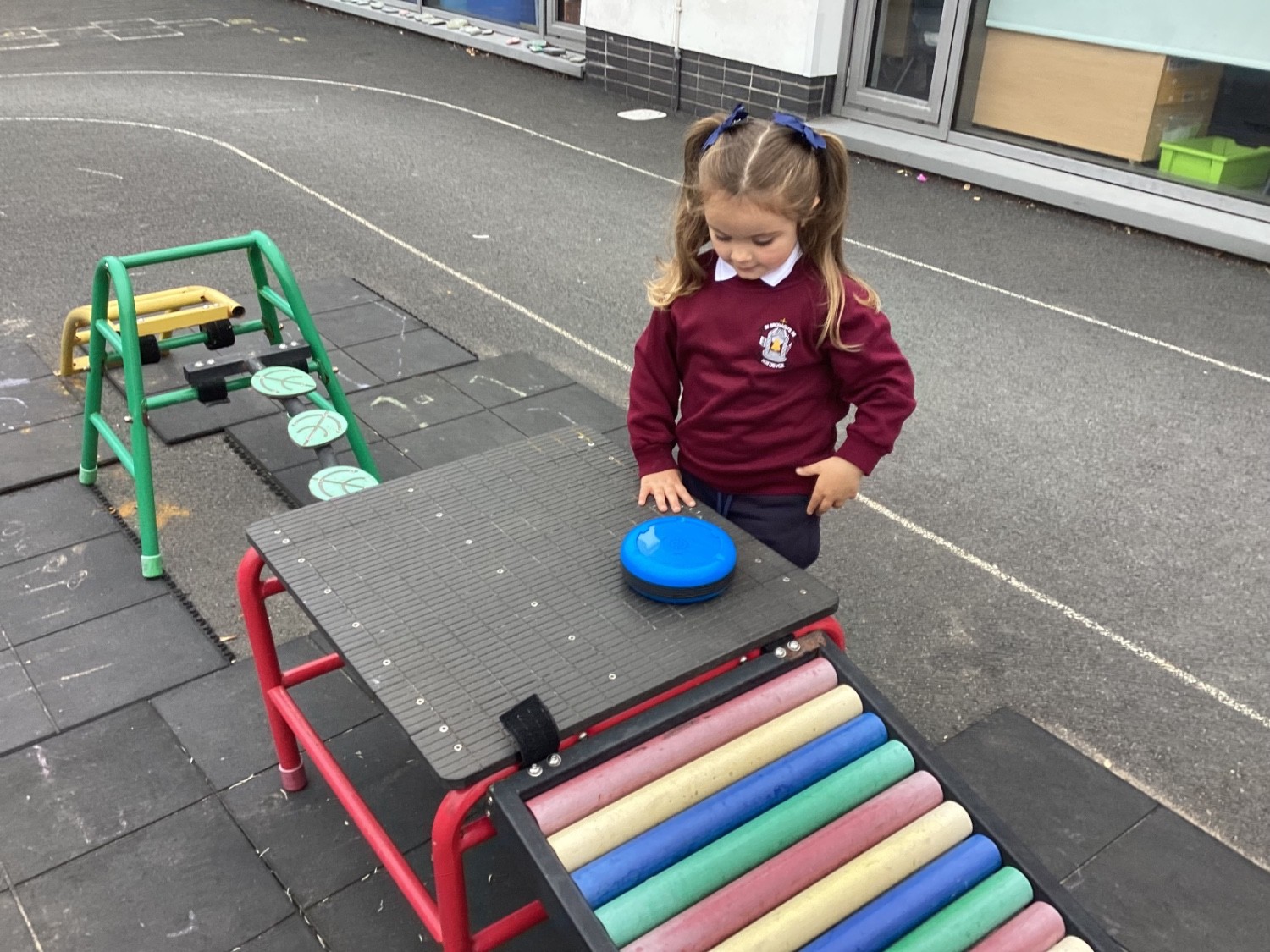 As part of Maths Week Ireland (11th–19th October), our Primary 1 pupils took their learning outdoors with an exciting and interactive Maths Trail around the playground. The children explored a series of large blue buttons, each featuring a recorded maths challenge to solve. Using their knowledge of number, shape, measures, and sorting, the pupils worked together to tackle each problem — putting their mathematical thinking into action in a fun and hands-on way.